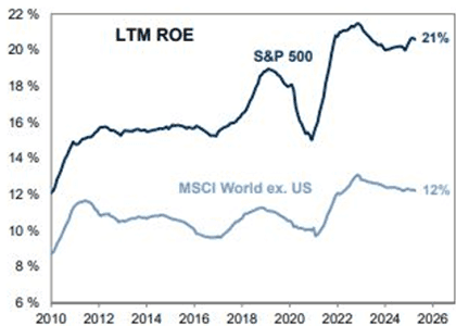 Fig 4: US vs ROW ROE; Source: Goldman Sachs; Gross margin deciles of US, European & Asian companies; Source: Bloomberg, VAR Estimates