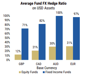 Fig 11: Realised FX volatility; Source: Bloomberg, VAR Estimates; Global US asset holding hedge ratios; Source: Morgan Stanley
